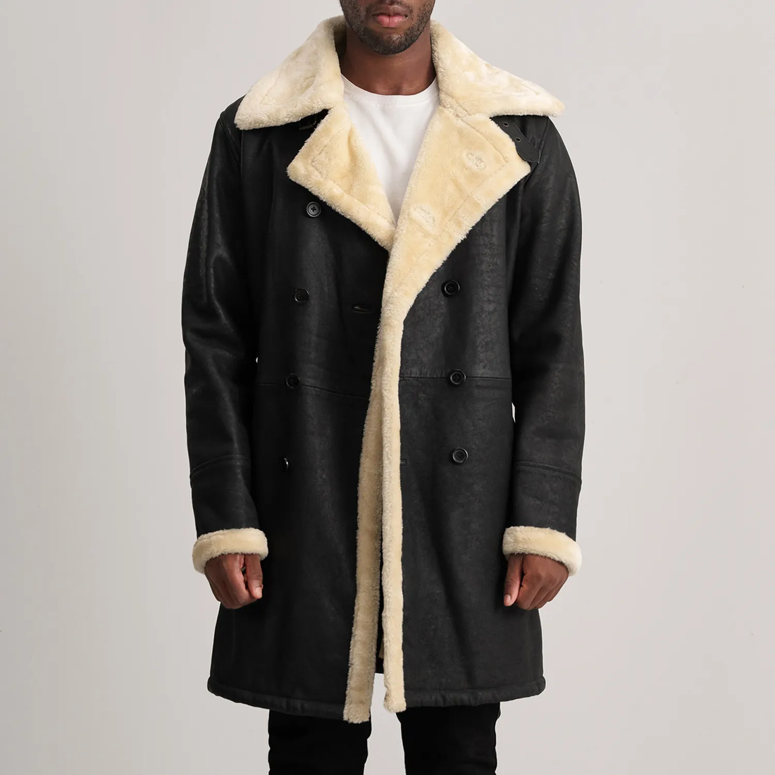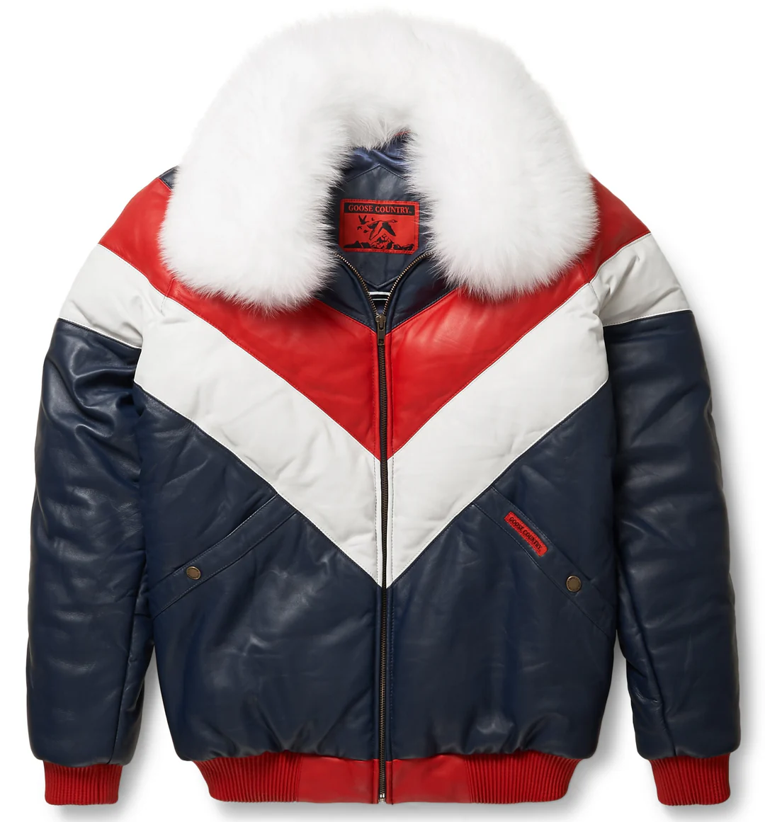 Men's V Bomber Green Leather Jacket with Shearling Collar