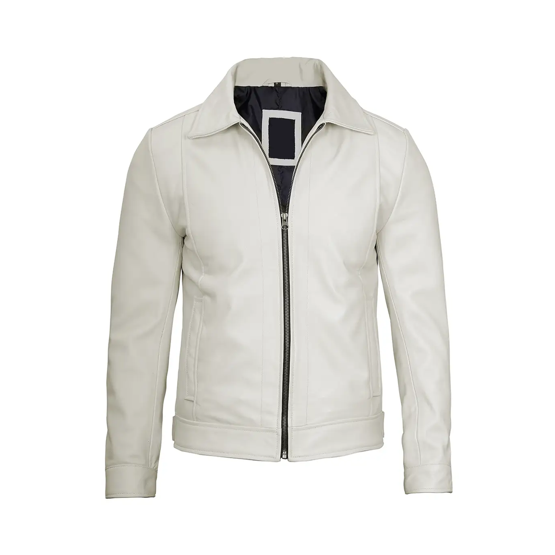 Specification: 100% Real Lambskin Leather. Lining: Polyester for added comfort. Color: White Design: Biker Closure:...