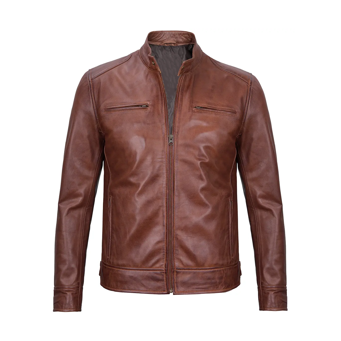 Specification: 100% Real Lambskin Leather. Lining: Polyester for added comfort. Color: Brown. Design: Biker Closure:...