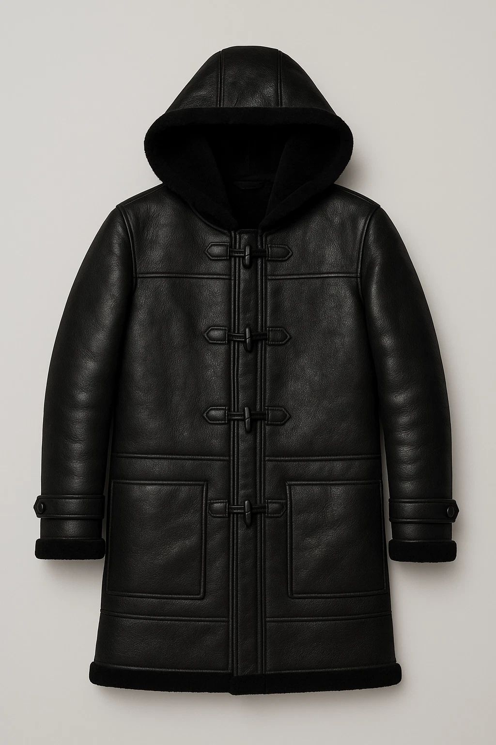 Men's Black Leather Shearling Long Coat