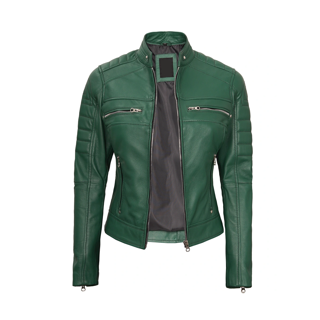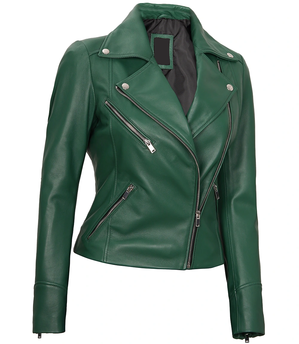 Women's Green Biker Leather Jacket