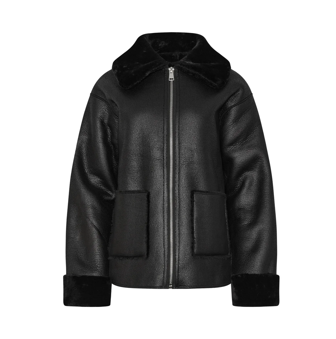 Elevate your wardrobe with our black bomber fur jacket.