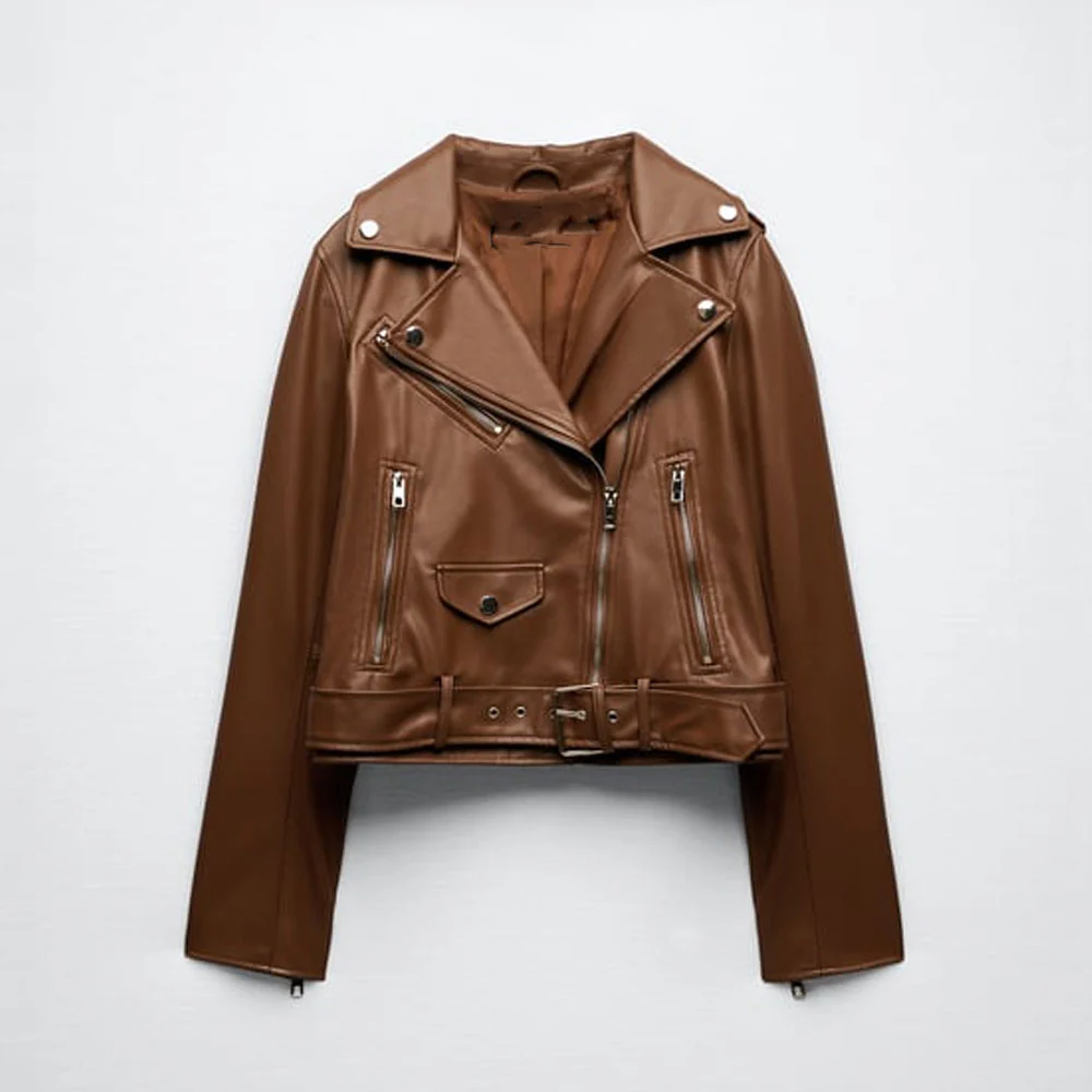 Specification: 100% Real Lambskin Leather. Lining: Polyester for added comfort. Color: Brown Design: Biker Closure:...