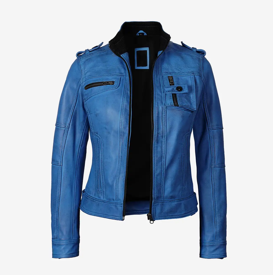 Women's Blue Biker Leather Jacket