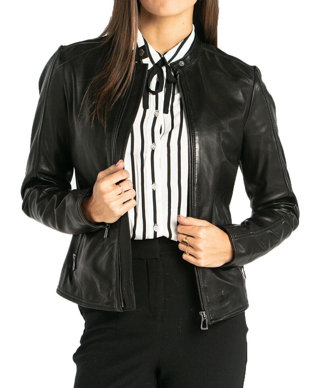 This is an Example of Women Bilker Leather Jacket.