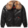 Men's Black Genuine shearling Collar V Bomber Puffer Leather Jacket