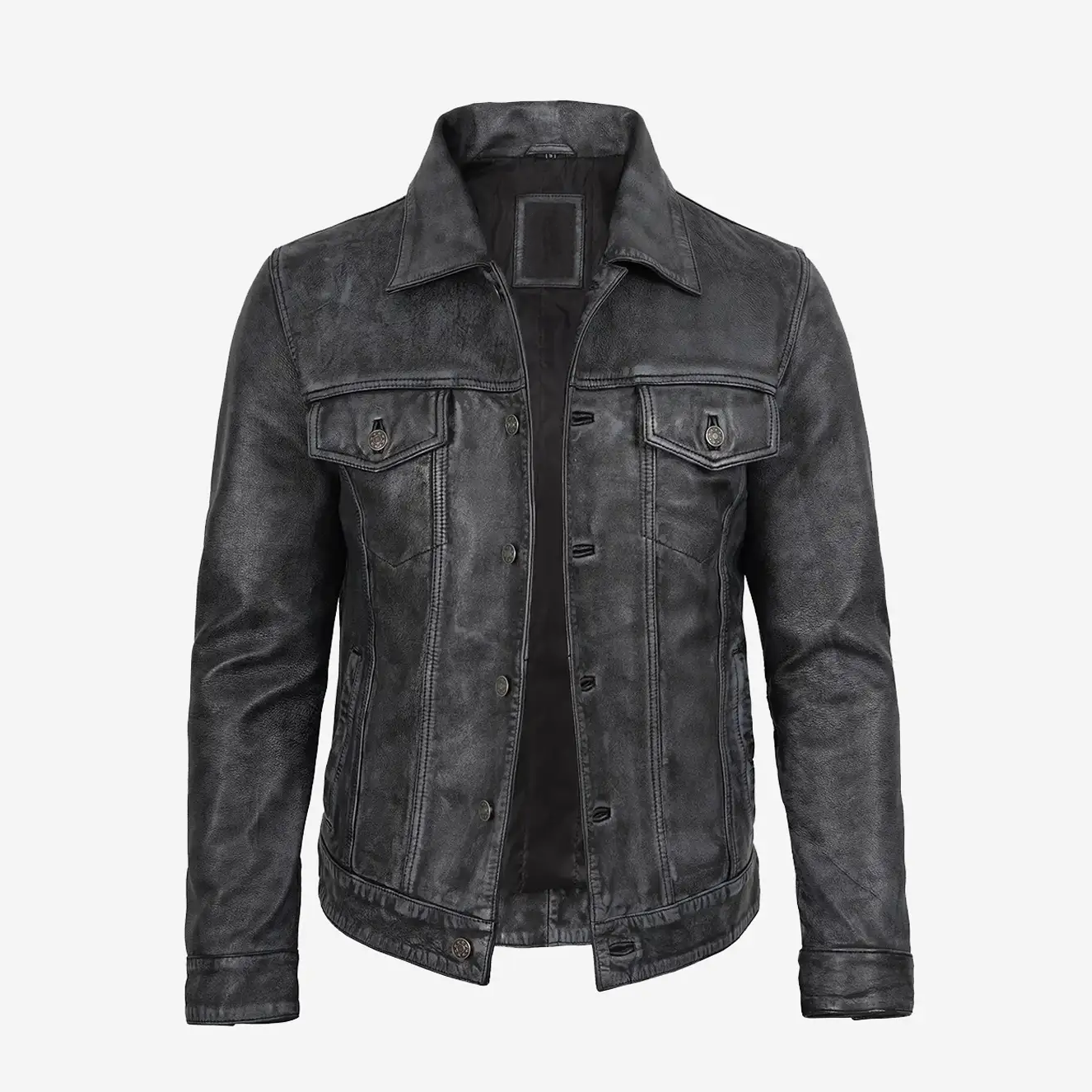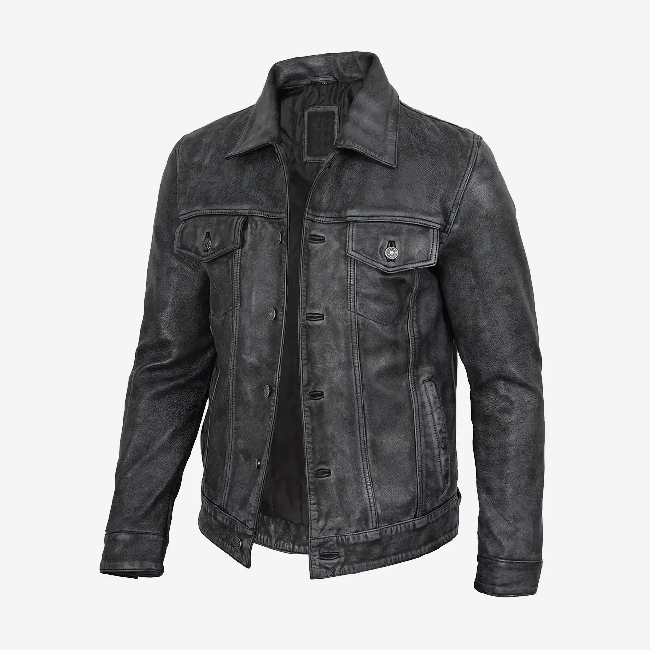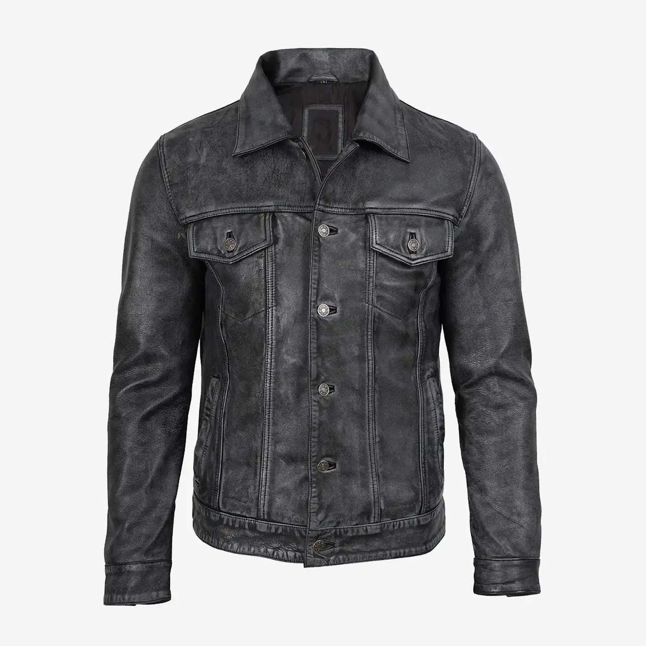 Men's Black Vintage Trucker Leather Jacket