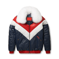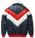 Men's Blue V-Bomber Leather Jacket