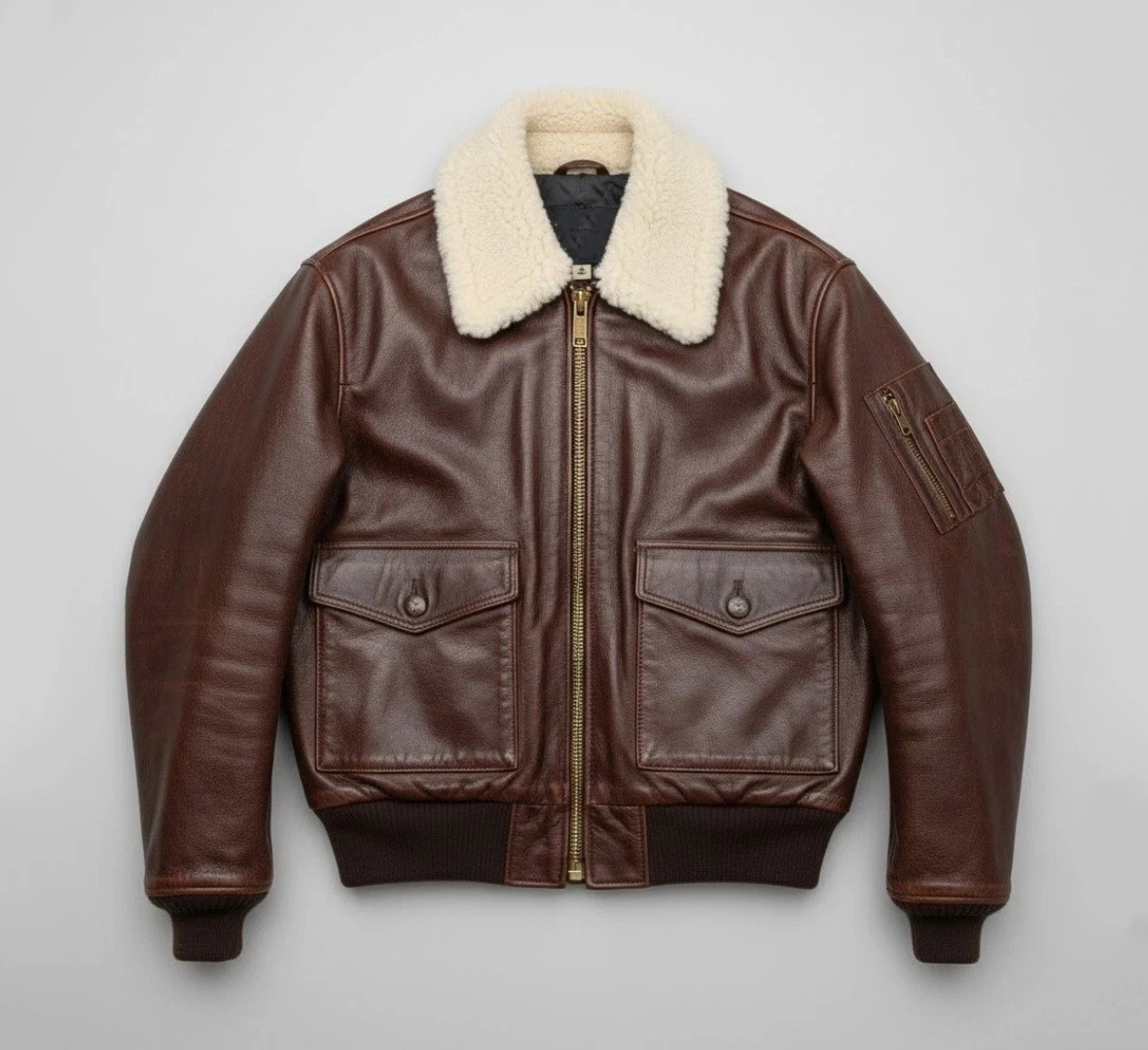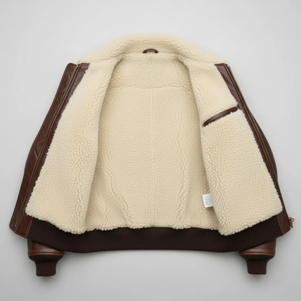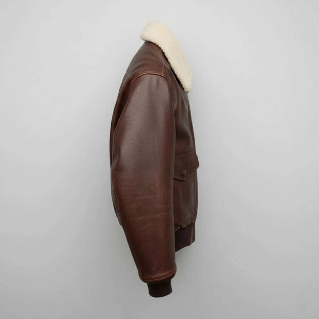 Men's Brown Shearling Leather Bomber Jacket