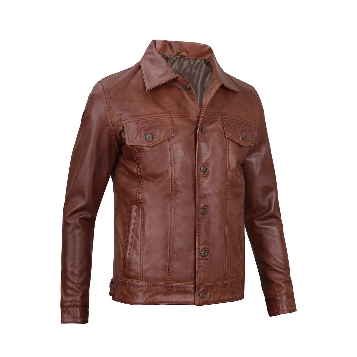 Men's Brown Trucker Leather Jacket