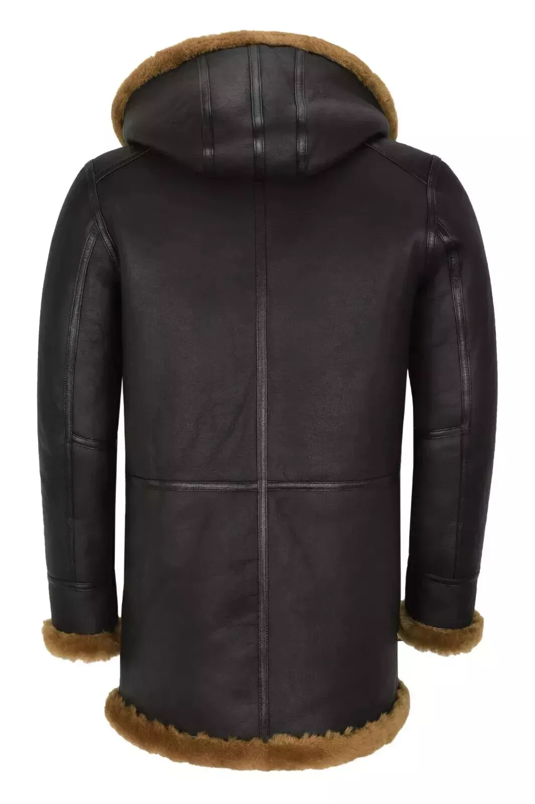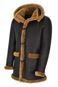 Men's Hooded Dark Brown Leather Shearling Coat