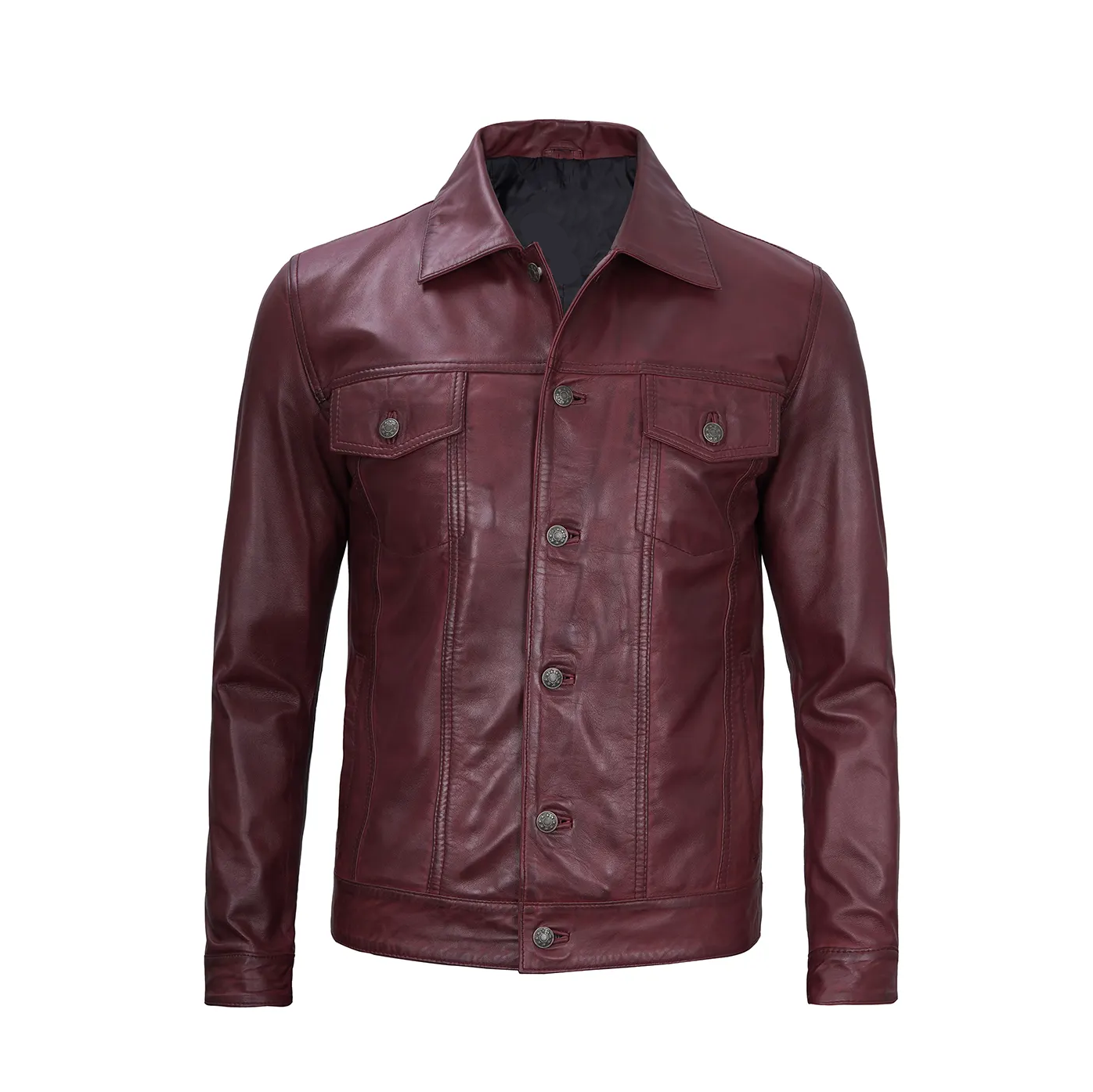 Men's Maroon Trucker Leather Jacket