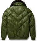 Men's V Bomber Green Leather Jacket with Shearling Collar