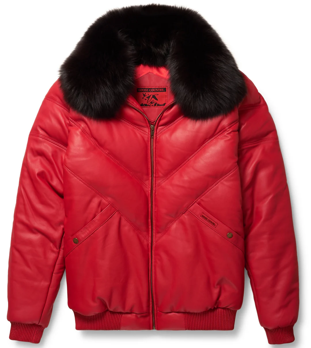 Men's V Bomber Red Leather Shearling Collar Jacket