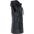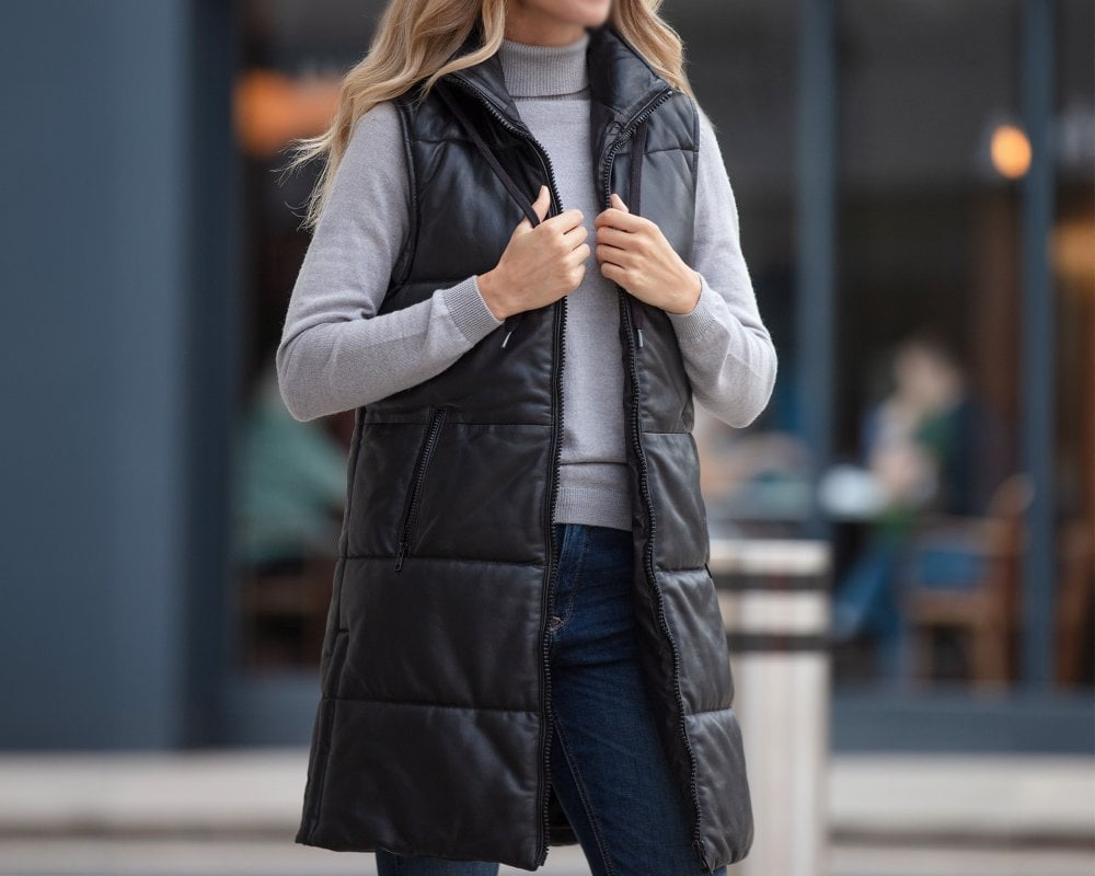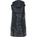 Women's Black Leather Hooded Puffer Long Length Coat