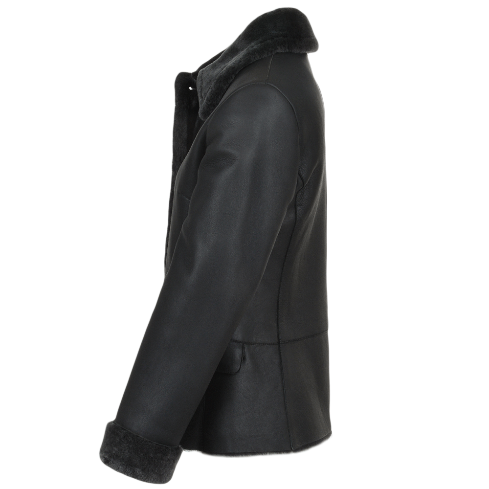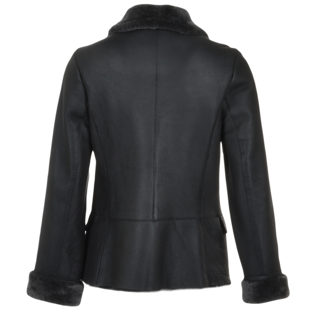 Women's Black Leather Shearling Coat