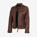 Women's Brown Cafe Racer Leather Jacket