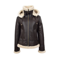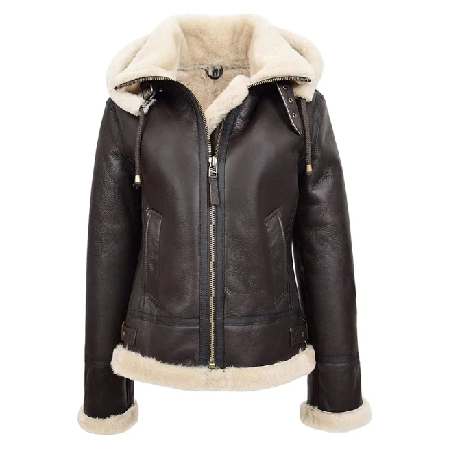 Women's Brown Leather Hooded shearling Jacket