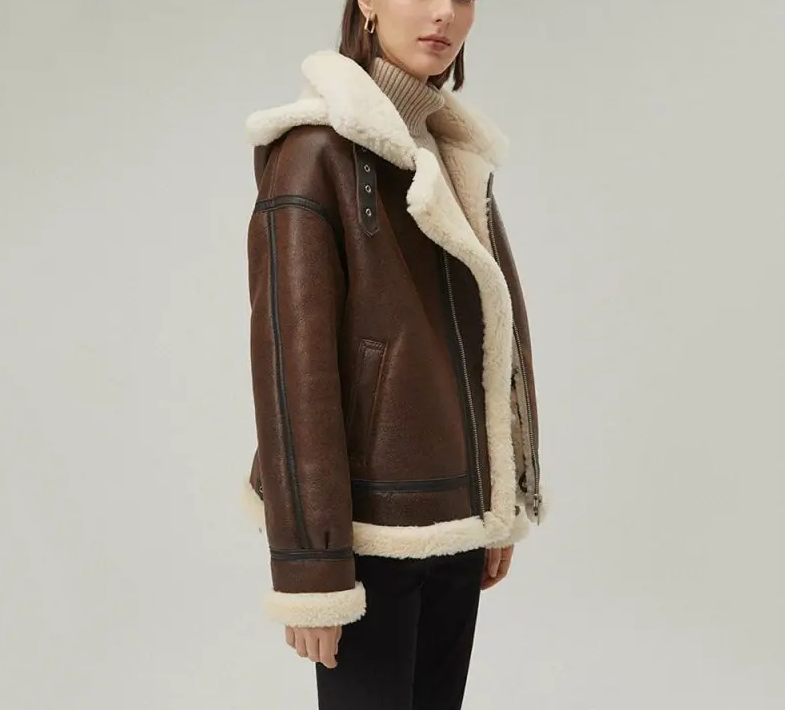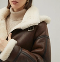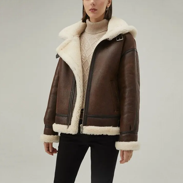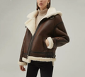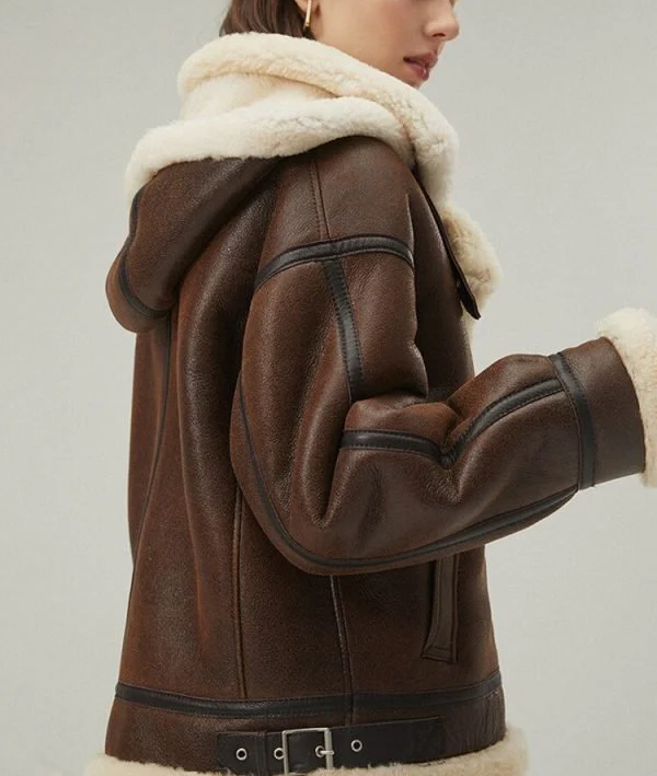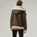 Women's Brown Sheepskin Shearling Hooded Leather Jacket