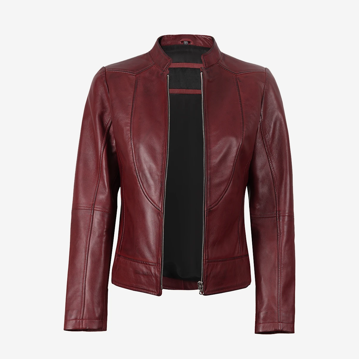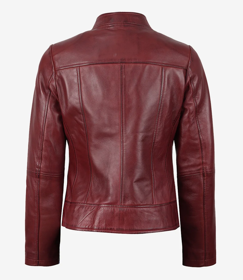 Women's Burgundy Biker Leather Jacket