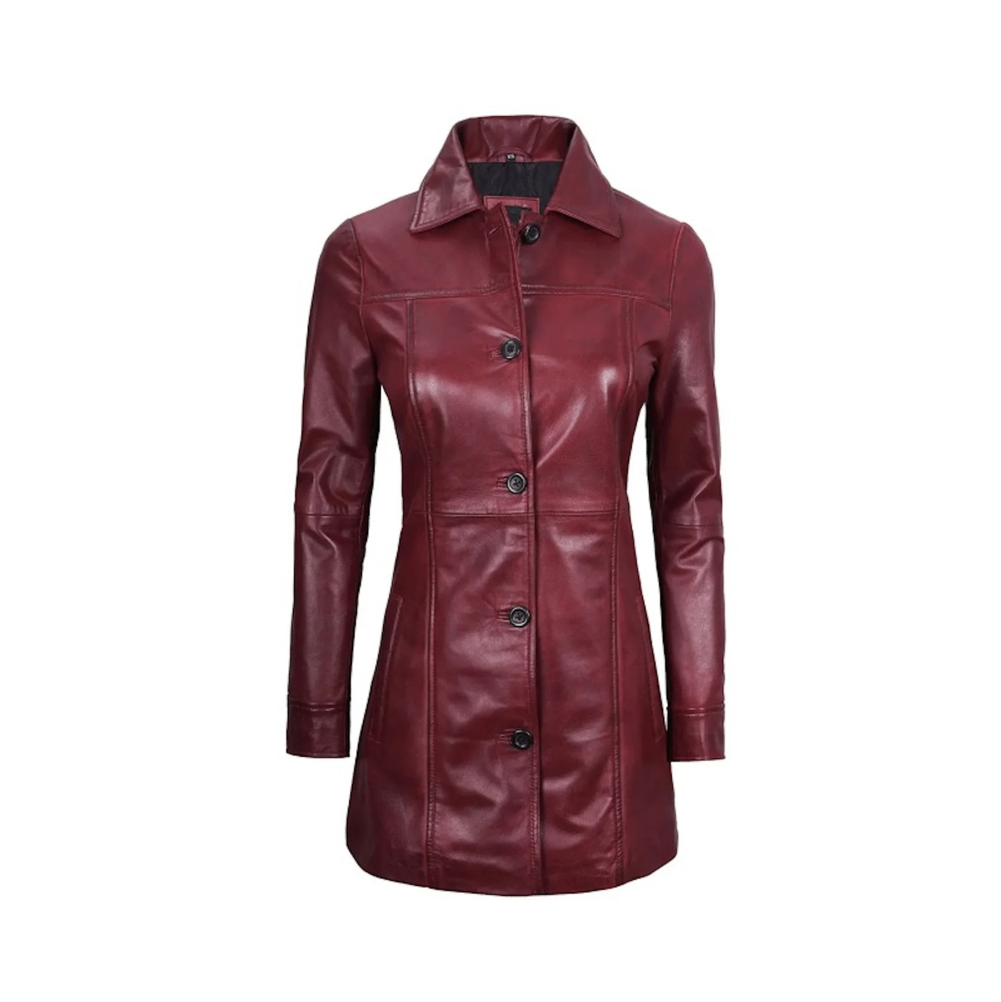 Women's Maroon Leather Coat