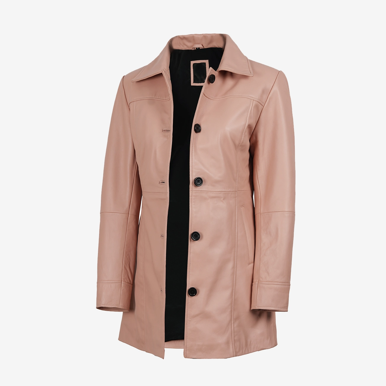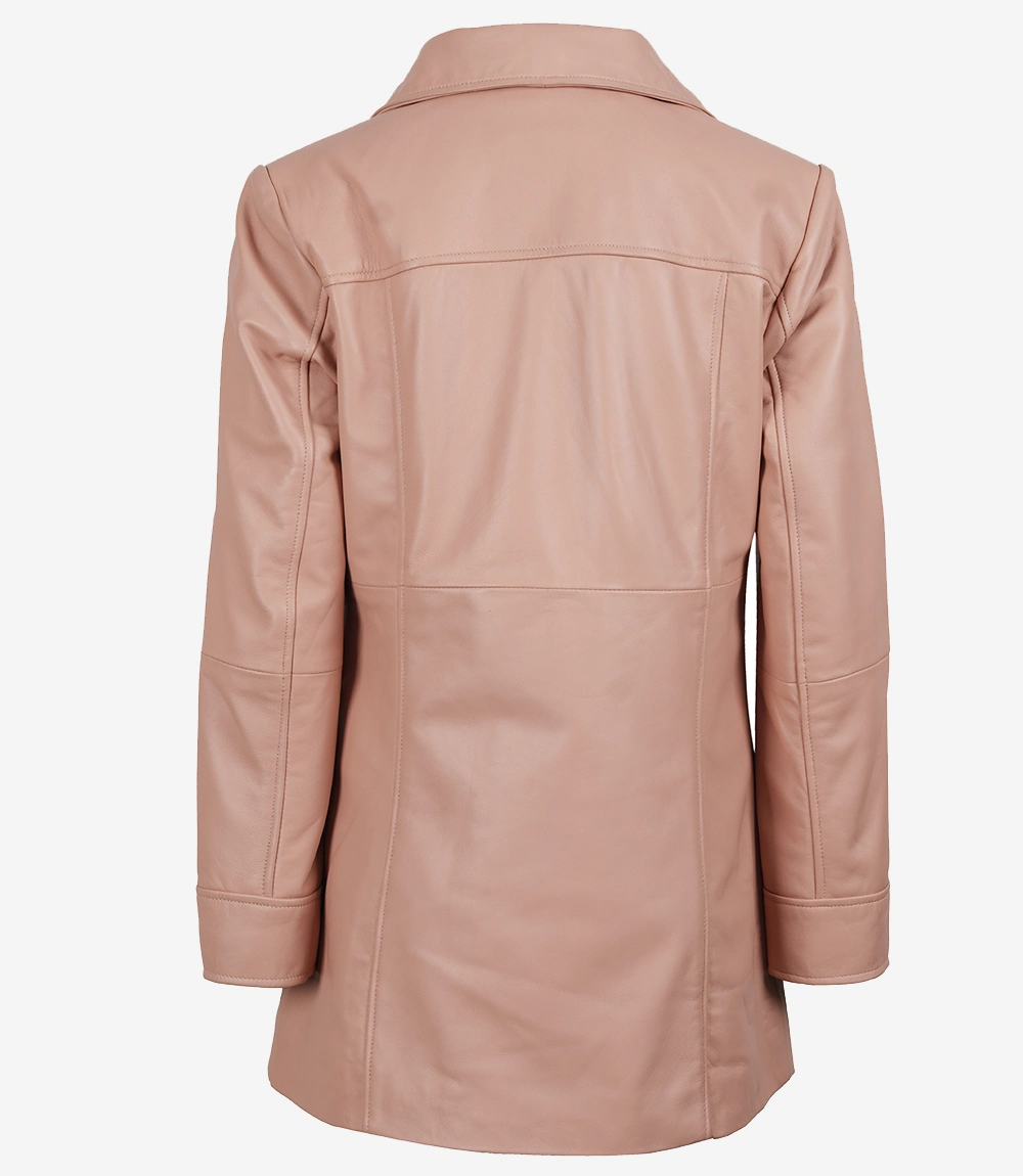 Women's Pink Lambskin Trench Long Coat