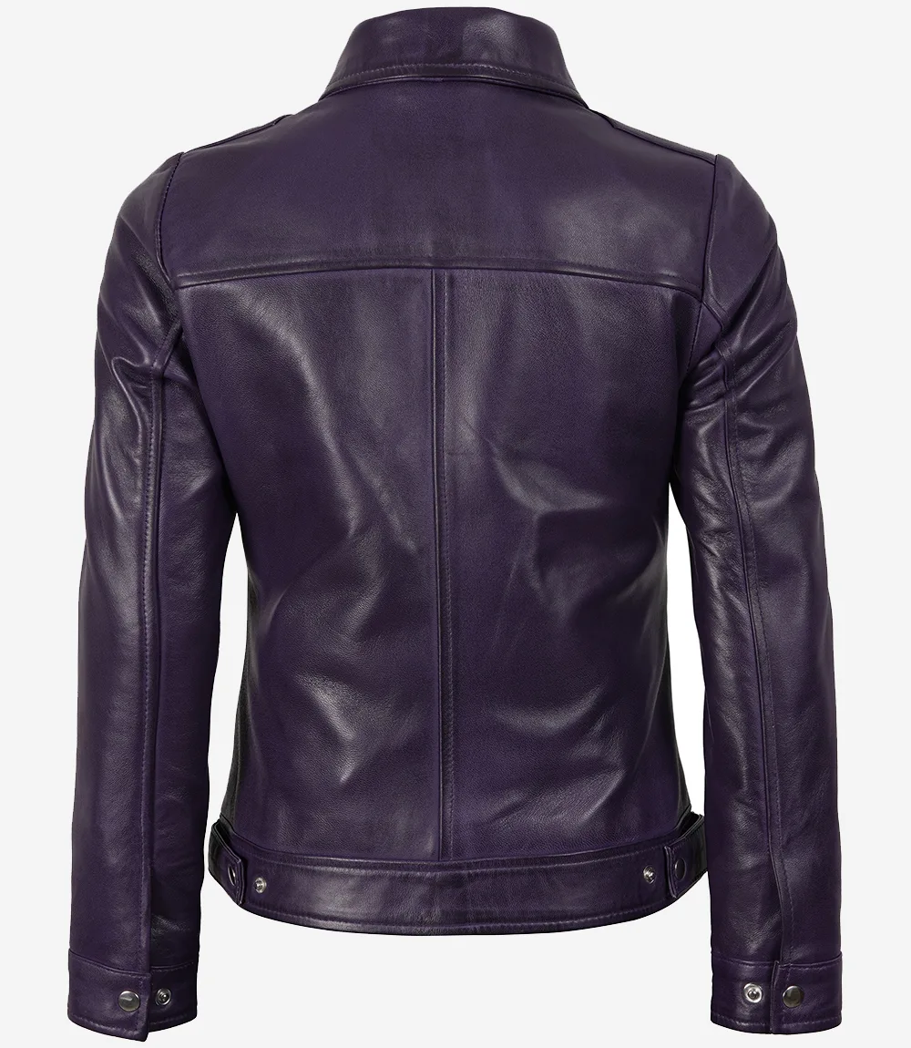 Women's Purple Biker Leather Jacket
