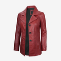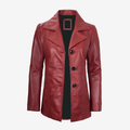 Women's Red Trench Leather Coat